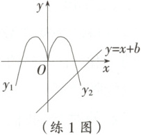 练 1 如图,函数 $ y_1 = -a(x + 1)^2 + 3 $($ x < 0 $)的图象过原点,将其沿 $ y $ 轴翻折,得到函数 $ y_2 $ 的图象,把函数 $ y_1 $ 与 $ y_2 $ 的图象合并后称为函数 $ L $ 的图象。