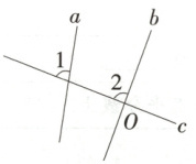 1. [北师七下 P56 习题改编] 如下左图,直线 $ a,c $ 固定,$ \angle 1=70^{\circ} $,直线 $ b $ 绕着点 $ O $ 旋转,当旋转到使 $ \angle 2= $