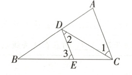 2. [冀七下 P62 习题改编] 如上中图,在 $ \triangle ABC $ 中,$ CD $ 平分 $ \angle ACB $,$ \angle 1=\angle 2=36^{\circ} $,则 $ \angle 3= $