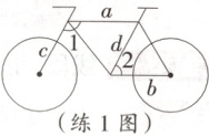 练 1 [25·石家庄 18 县区一模] 如图是一辆竖直放在地面上的自行车的示意图,其中 $ a// b $,$ c// d $,$ \angle 1=115^{\circ} $,则 $ \angle 2=($