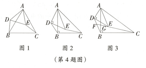 (2)$\frac{\sqrt{2}}{2}$; 提示:$\because \triangle ABC$和$\triangle ADE$都是等腰直角三角形,$\therefore \frac{AD}{AE} = \frac{AB}{AC} = \frac{\sqrt{2}}{2}$,$\angle DAE = \angle BAC = 45^{\circ}$,