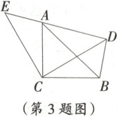 3. 如图,$\triangle ACB$ 和 $\triangle ECD$ 都是等腰直角三角形,$CA = CB$,$CD = CE$,$\triangle ACB$ 的顶点 $A$ 在 $\triangle ECD$ 的斜边 $DE$ 上,连接 $BD$。若 $AE = 3\ cm$,$AD = 6\ cm$,则 $AB$ 的长为 $$