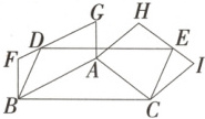 2. [冀八下 P121 练习改编] 如上右图,分别以 $\triangle ABC$ 的三边为一边作 $□ BCED,□ ABFG,□ ACIH$,且点 $D,E$ 分别在 $FG,HI$ 上.若 $□ ABFG,□ ACIH$ 的面积分别为 $S_1,S_2$,则 $□ BCED$ 的面积为 (