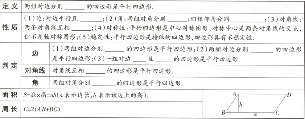 考点一 平行四边形的概念、性质与判定 (必考,考查平行四边形的性质与判定) ★重点