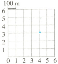 8. 如右图,图书馆的位置可以用$(4, 3)$表示,小军家和图书馆相距300m,小军家的位置不可能是()。