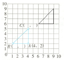 2. 画出三角形ABC向右平移5格,再向上平移4格后的图形。(3分)