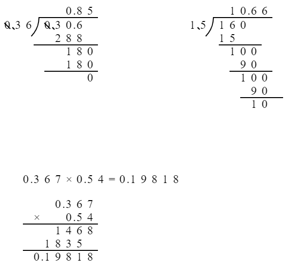 $0.306÷0.36=$$16÷1.5≈$$0.367×0.54=$
