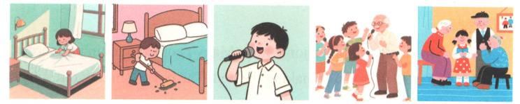一、听录音,把录音内容的编号分别填入对应图片下面的括号中。
