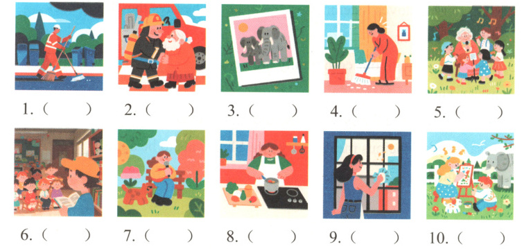 二、听录音,判断下列图片与录音是否相符。相符的填写 T, 不相符的填写 F。