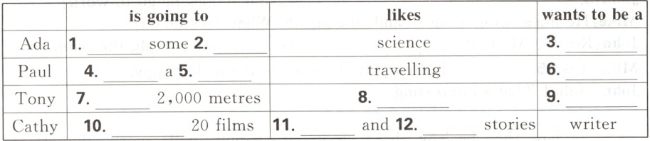 1.visit 2.museums 3.scientist 4.take 5.trip 6.pilot 7.run 8.running 9.coach 10.see 11.reading 12.writing