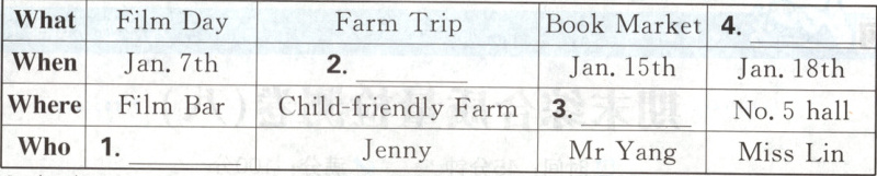 )4.A. Let’s read! B. Cut! Cut! Cut! C. Feed animals!任务二:为Li Fei的记事本贴上合适的小标签。(