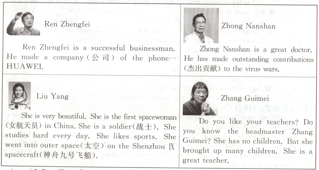 )5. Which of the following is RIGHT?A. Liu Yang likes sports. She is the first woman soldier.