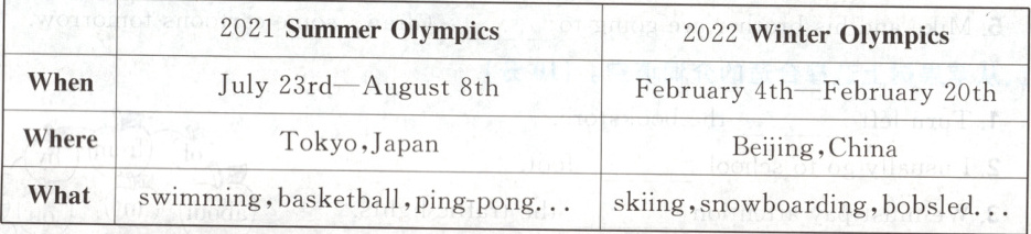 )4. When can we watch Beijing Winter Olympic Games?A. On February 5th.