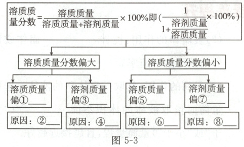 同学们对溶液配制的过程进行分析并构建了如图5-3所示造成偏差的思维模型,请补全模型并分析偏差产生的原因(原因分析从下列选项中选择,填字母)。