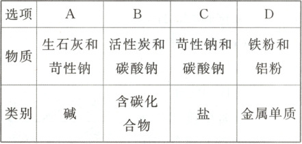 3. 某自热火锅的发热包成分标识如图10-4所示。下列各组物质所属类别正确的是(