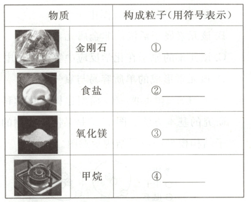 (1)小明通过列举如表所示四种物质的粒子构成,驳斥了道尔顿“物质均由原子构成”的观点,请完成下表。