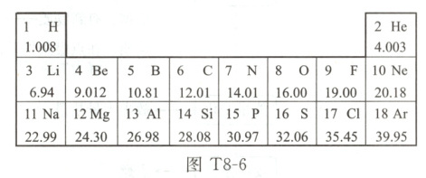 (3)氩原子结构示意图如图 T8-7 所示,请从结构和性质的角度分析,氩气可作焊接金属保护气的原因是