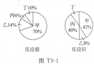 3. 密闭容器内有甲、乙、丙、丁四种物质,在一定条件下充分反应,测得反应前后各物质的质量分数如图T9-1所示。下列说法错误的是(