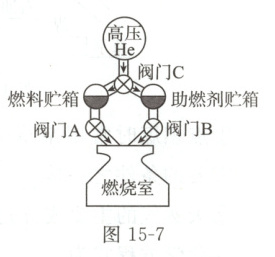 2024年5月3日,搭载嫦娥六号探测器的长征五号遥八运载火箭在中国文昌航天发射场成功发射。该火箭的发动机使用液氧液氢作为推进剂,火箭发动机运行简示图如图15-7。