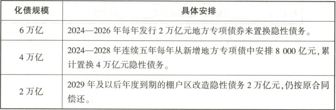 4. 为有效防范化解地方政府债务风险,2024 年 11 月,财政部对外公布了“6+4+2”的化债“组合拳”,具体安排如下表。