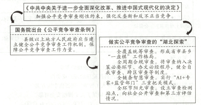 材料一 公平竞争是市场机制高效运行的重要基础,公平竞争审查对规范行政机关及部门行为具有积极作用。2024年以来,我国不断对公平竞争审查上“硬杠杠”。