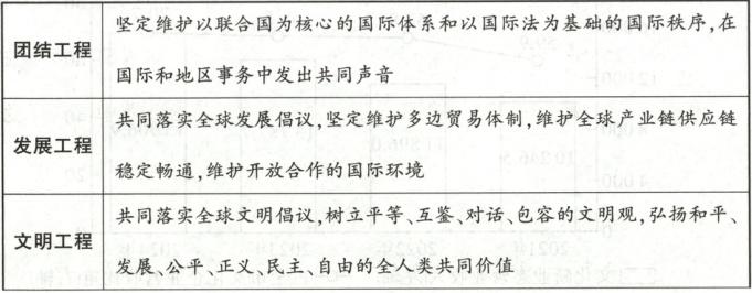 【命题意图】本题考查推动世界和平与发展的有效途径、构建人类命运共同体、国际关系民主化,考查考生获取和解读信息、调动和运用知识、描述和阐释事物的能力。