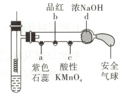 5. 若将铜丝插入浓硫酸中进行如图(a~d均为浸有相应试液的棉花)所示的探究实验,下列分析正确的是(