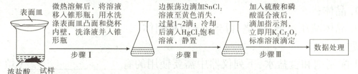 已知:氯化铁受热易升华;室温时$ HgCl_2$可将$ Sn^{2+}$氧化为$ Sn^{4+}$,难以氧化$ Fe^{2+}$;$ Cr_2 O_7^{2-}$可被$ Fe^{2+}$还原为$ Cr^{3+}$。