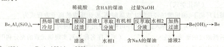 。(4) 写出反萃取生成 $ Na_2[ Be(OH)_4]$ 的化学方程式
