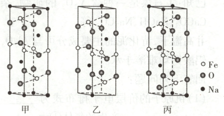 。② $ NaFeO_2$ 的晶胞结构示意图如甲所示。每个晶胞中含有 $ NaFeO_2$ 的单元数有