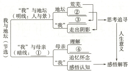 1. 史铁生的人生感悟是独特的,这和他承受着因残疾而导致的苦难有关,但他超越了自我,对人的生存状态和意义,包括对生与死,都有深邃的思考。赏析下列句子中的景物特点和所蕴含的生命感悟。(见教材P117“学习提示”第2段)