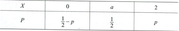 3. 方差计算:$D(X)=E(X^2)-[E(X)]^2$,其中$E(X^2)=0^2·\left(\frac{1}{2}-p\right)+a^2·\frac{1}{2}+2^2· p=\frac{a^2}{2}+4p$,则$D(X)=\frac{a^2}{2}+4p-1^2=\frac{a^2}{2}+4p-1$。由$D(X)=\frac{1}{2}$得$\frac{a^2}{2}+4p=\frac{3}{2}$②。