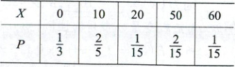 则$D(X)=(0-16)^{2}×\frac{1}{3}+(10-16)^{2}×\frac{2}{5}+(20-16)^{2}×\frac{1}{15}+(50-16)^{2}×\frac{2}{15}+(60-16)^{2}×\frac{1}{15}=384$.