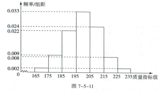 例2 [全国Ⅰ卷]从某企业生产的某种产品中抽取500件,测量这些产品的一项质量指标值,由测量结果得如图7-5-11所示的频率分布直方图.