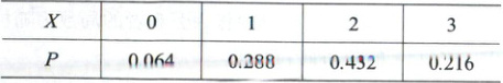 | $P$ | 0.064 | 0.288 | 0.432 | 0.216 |