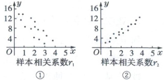 AC 解析:由散点图可知,题图①表示y与x负相关,故 -1<r₁<0,故A正确;题图②表示y与x正相关,故0<r₂<1,故B错误;因为样本相关系数r₂的点较样本相关系数r₁的点密集,故|r₂|>|r₁|,故r₁+r₂>0,故C正确,D错误.