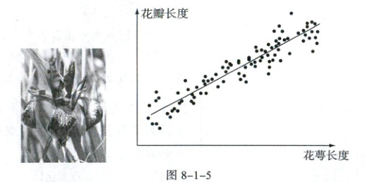 ✑ 例 1 [2023·天津卷] 调查某种群花萼长度和花瓣长度,所得数据如图 8-1-5 所示,其中样本相关系数$r = 0.8245$,下列说法正确的是(