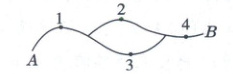 只有$1$,$4$两种情况会导致电路不通(因为$2$或$3$单独脱落,$A$,$B$间还有另一条支路导通)。