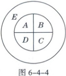 7. 某广场布置了一个如图 6-4-4 所示的圆形花坛,花坛分为 5 个区域. 现有 6 种不同的花卉可供选择,要求相邻的区域(有公共边)不能布置相同的花卉,且每个区域只布置一种花卉,则不同的布置方案有(