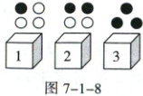 14. [2024·山东潍坊高二检测]如图7-1-8,有三个外形相同的箱子,分别编号为$1$,$2$,$3$,其中$1$号箱装有$1$个黑球和$3$个白球,$2$号箱装有$2$个黑球和$2$个白球,$3$号箱装有$3$个黑球,这些球除颜色外完全相同.小明先从三个箱子中任取一箱,再从取出的箱中任意摸出一球,记事件$A_i(i = 1,2,3)$表示“球取自第$i$号箱”,事件$B$表示“取得黑球”.