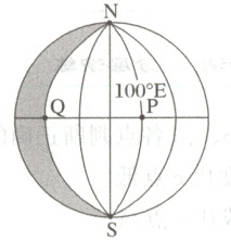 下图中阴影部分表示夜半球。读图,完成 9~10 题。