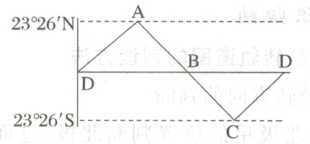 (1)A为夏至,B为秋分,C为冬至,D为春分。 (2)南半球,向北移动。
