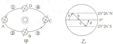 (2)太阳直射点从a→b→c→d运动的周期是(
