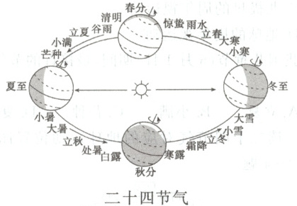 二十四节气是中国历法的独特创造,几千年来对我国农牧业的发展起了很大推动作用。下图为二十四节气图。读图,完成(1)~(2)题。