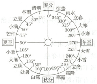 1 A 2 C 第1题,二十四节气是中国农历中表示季节变迁的特定节令,是根据地球在黄道上的位置变化而制定的,黄道是地球公转的轨道,因此二十四节气反映的是太阳的周年视运动。第2题,我国儿童节(6月1日)期间,最接近的是夏至之前的一个节气芒种(6月7日前后)。