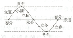 二十四节气是我国劳动人民智慧的结晶,对农业生产有很强的指导意义。下图为太阳直射点移动过程与主要节气对应位置。读图,回答5~6题。