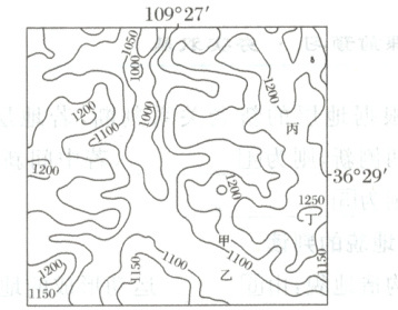 就在这大自然无数黄色的皱褶中,世世代代生活和繁衍着千千万万的人。无论沿着哪一条“皱纹”走进去,你都能碰见村落和人烟,而且密集得叫你不可思议——《平凡的世界》。下图为黄土高原局部等高线示意图(单位:m)。据此完成 1~2 题。