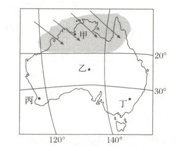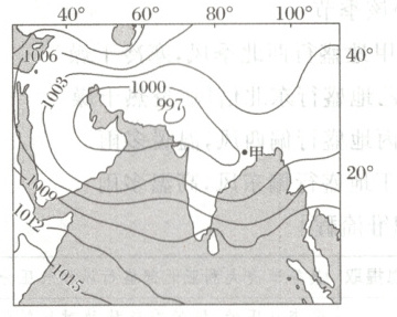 下图为某季节澳大利亚北部盛行风和气压分布图。读图,回答(1)~(2)题。