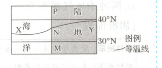 右图为某月海陆等温线分布示意图。读图,回答(1)~(2)题。
