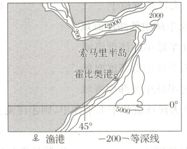 12 A 13 B 第12题,结合材料和索马里半岛东部海域的纬度和海陆位置可知,夏季吹西南风,半岛东部海岸受西南离岸风影响形成上升补偿流,给海洋表层带来盐类物质,饵料丰富,形成渔场,因此渔业资源丰富的季节为夏季。故选A。第13题,由题意可知,我国护航舰队从海南出发前往索马里半岛东部海域,最好是顺风顺水。北印度洋冬季吹东北风,洋流成逆时针方向,我国护航舰冬季出发前往就能顺风顺水。故选B。